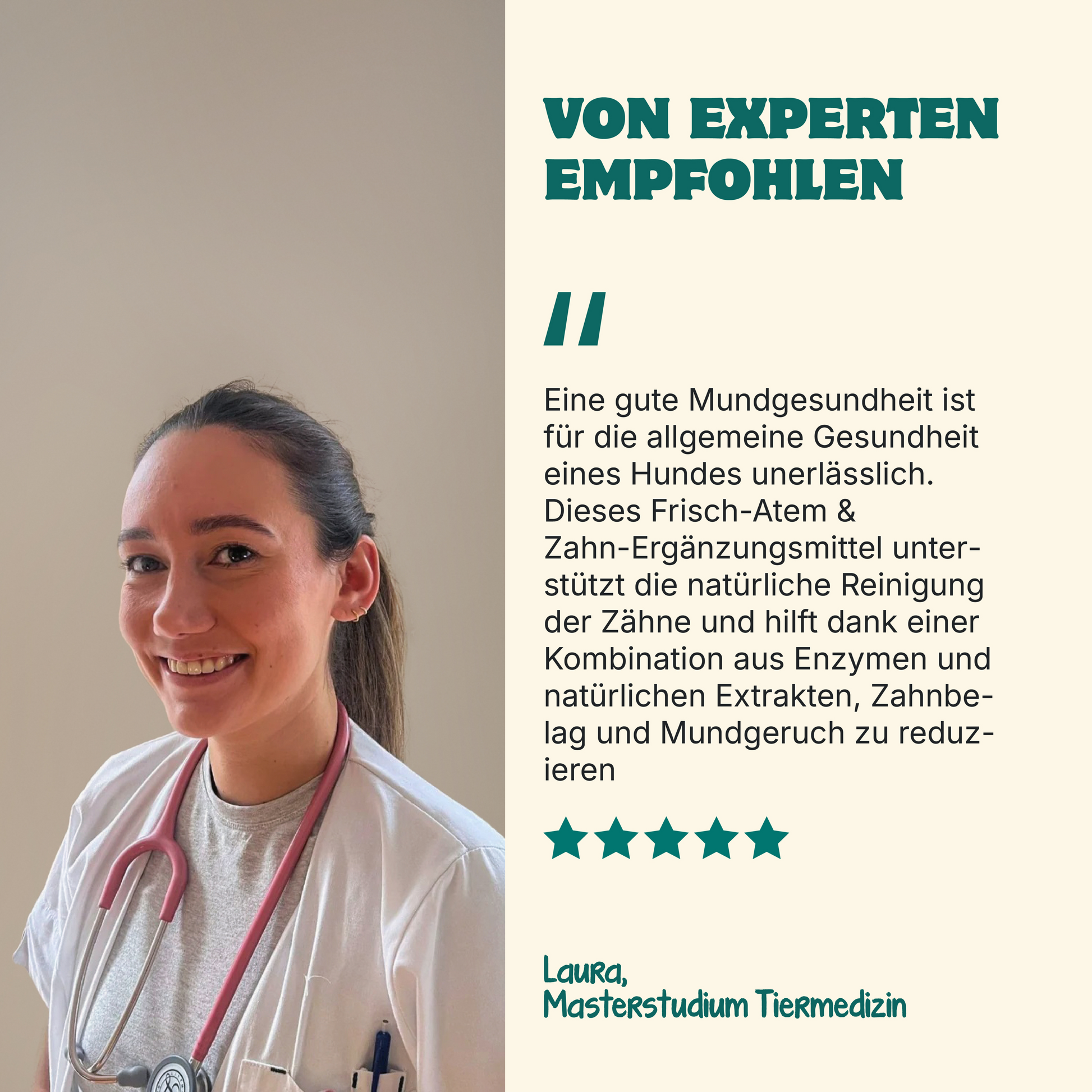 Wie gebe ich das Frischer Atem Pulver meinem Hund?